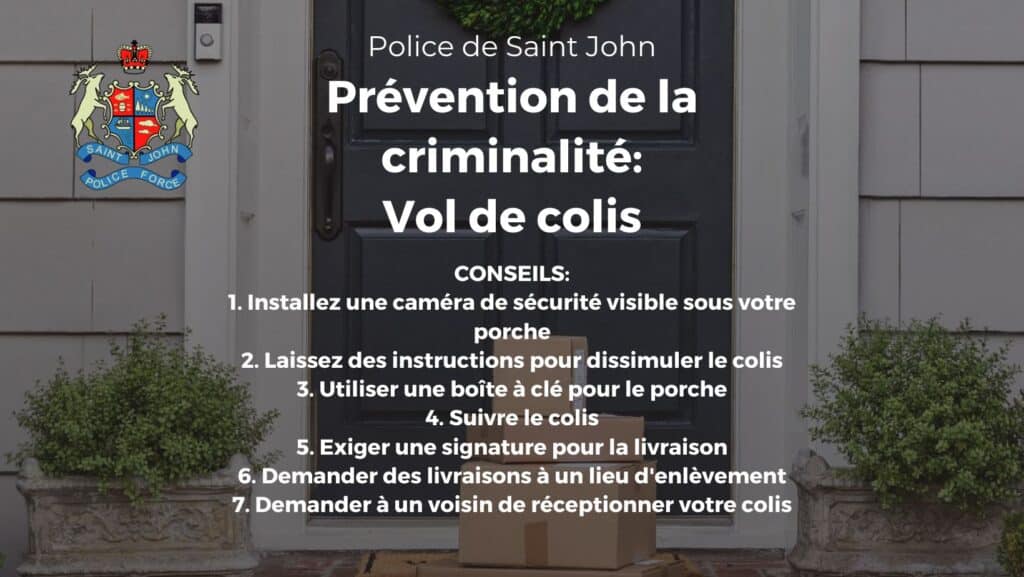 La police de Saint John vous encourage à utiliser ces conseils pour aider à prévenir de tels crimes et à signaler toute activité suspecte.