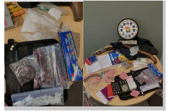 - Police seized a loaded sawed-off shotgun, a sawed-off .22 calibre rifle, a quantity of crystal methamphetamine and fentanyl (street value of over $37 000), a bullet proof vest and Canadian currency.
