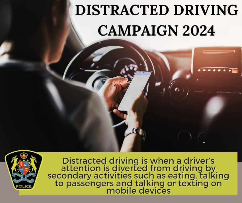 The Saint John Police will be conducting a Distracted Driving Campaign between July 15-19, 2024. The campaign will focus on the enforcement of distracted driving legislation and on educating the public about the dangers associated with distracted driving.
