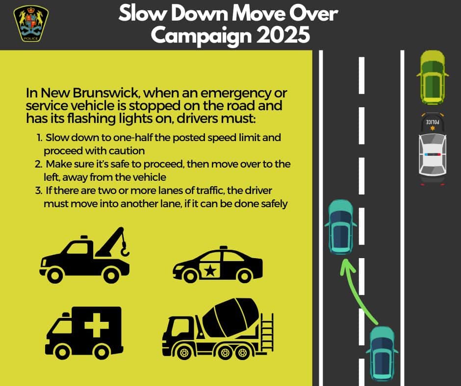 The Saint John Police will be conducting a Slow Down Move Over Campaign between April 29 – May 2, 2025. The focus of the campaign will be to promote safety for all emergency and service personnel through education and enforcement.